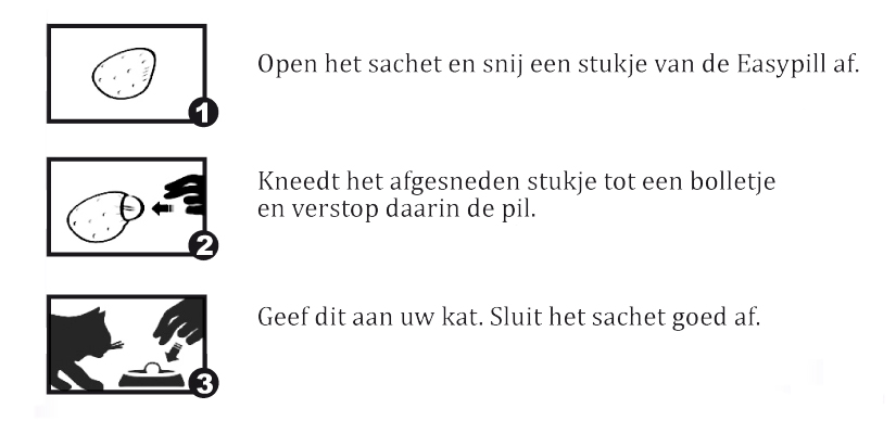 Easypill heeft zowel voor de kat een aantrekkelijke smaak, geur en samenstelling. Daarmee worden de vorm en smaak van de pil gemaskeerd. Easypill laat zich ook makkelijk verdelen in meerdere stukjes. Zo is de grootte van het stukje Easypill aan te passen aan de grootte van het toe te dienen tabletje. De restanten kunt u weer samenkneden en opnieuw gebruiken.