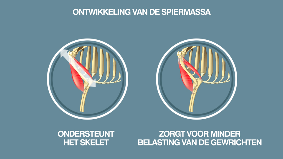 Een voeding met weinig koolhydraten en veel dierlijke eiwitten helpt om bij uw huisdier een ideaal lichaamsgewicht & lichaamsconditie te realiseren. Voor een optimale mobiliteit is het erg belangrijk dat de spiermassa zich goed ontwikkelt. Deze ondersteunt namelijk het skelet en zorgt daarmee voor minder belasting van de gewrichten.